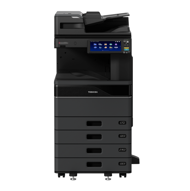 Reach printing speeds of up to 20 ppm with the Toshiba 2020AC all-in-one (MFP) printer. This 550-sheet capacity multi-function device has a 26 cm (10.1”) Multi-Touch Colour Panel and is equipped with 4 GB RAM to easily keep up with the needs of your business. Use e-Cloud Connect and Remote Assist for remote service, getting you back to business faster than ever. You'll be printing high-quality documents that are sure to impress with up to 1,200 x 1,200 dpi print resolution.