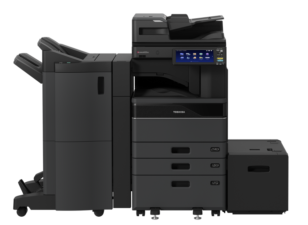The Toshiba e-Studio 6528A reaches a printing speed of 65 pages per minute, with a short 26-second warm-up time. This powerful printer has 6 GB RAM, a 10.1-inch tablet-style colour panel, and both Remote Assist and e-Cloud Connect to make it more efficient than before.